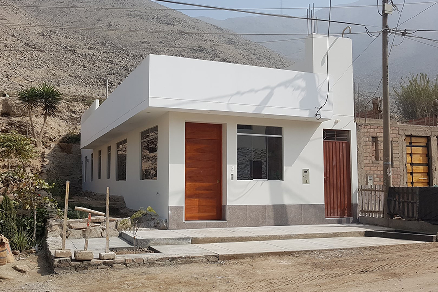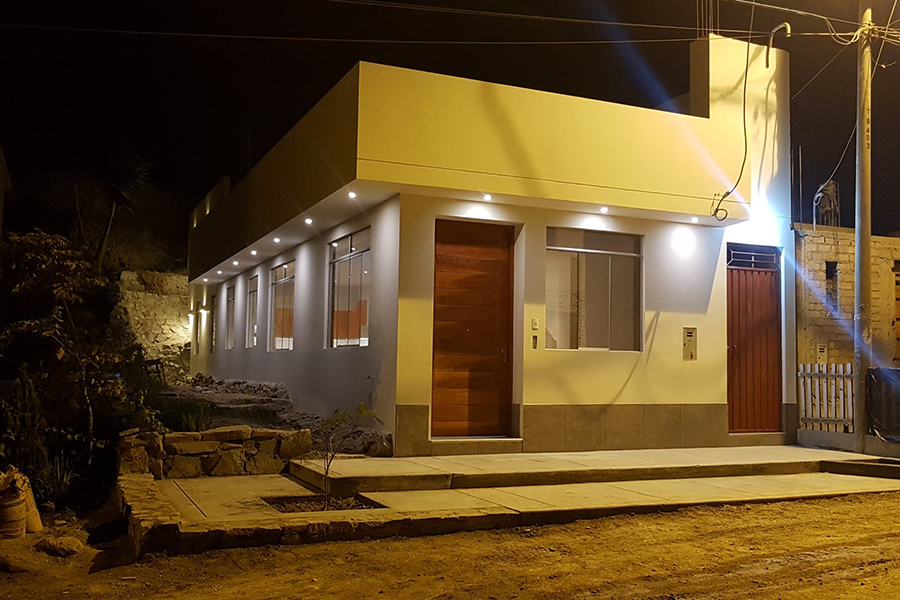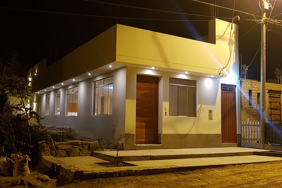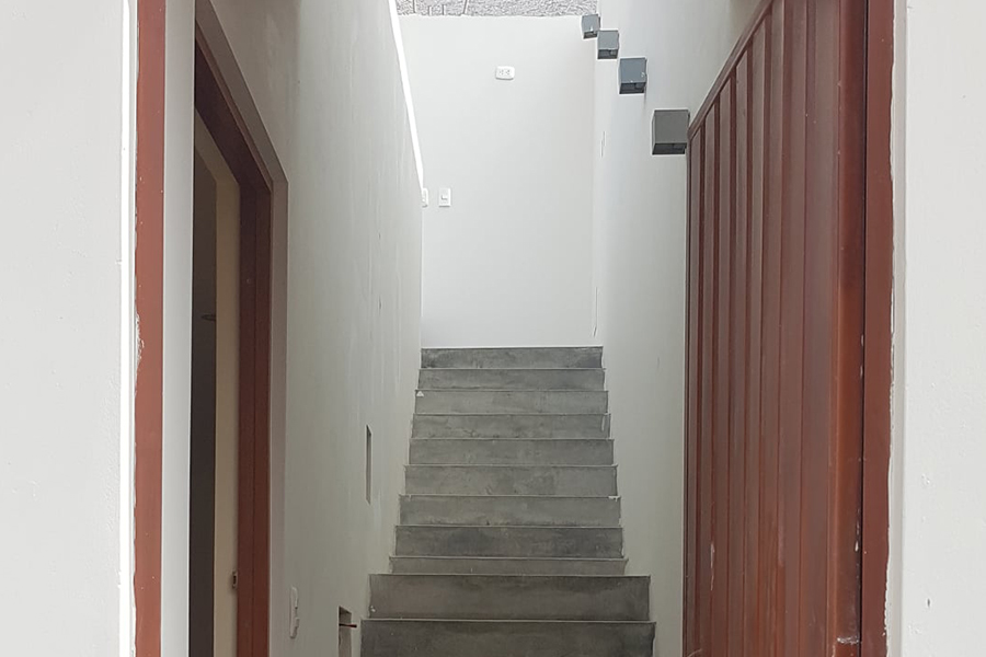 Vivienda unifamiliar diseñada en un solo nivel y con proyección estructural para 3 pisos y azotea en total. Desarrollado en esquina colindante con Calle y un pasaje existente. Se considero el espacio social interior como espacio integrado de sala, comedor y cocina, dos habitaciones grandes y sus respectivos patios internos para garantizar iluminacion y ventilacion natural en todos sus ambientes.